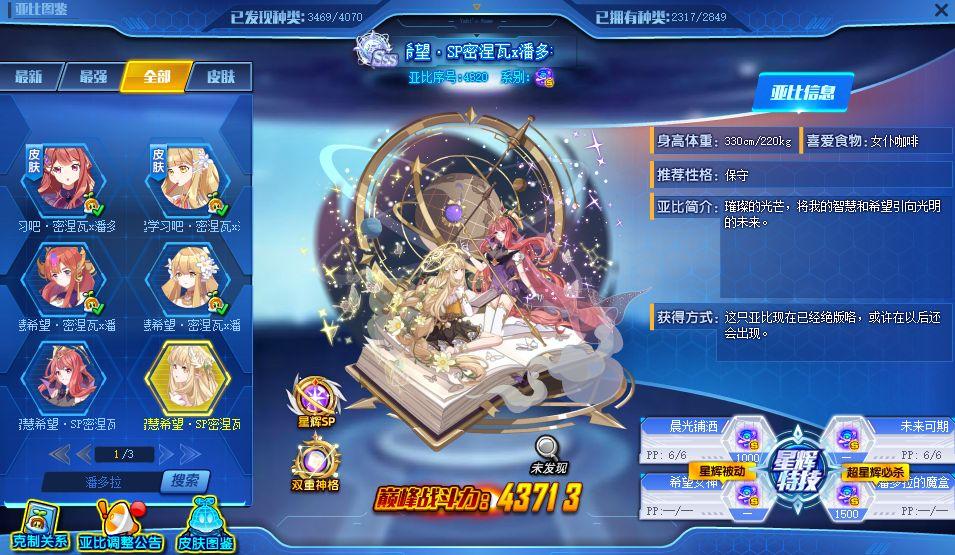 首先是sp密潘,sp密潘可以说是铁打的,潘多拉状态下,被动附带不设上限的固伤,密涅瓦状态下,其星辉特技可以使得对方属性无效(用得比较少)。 且sp特技对boss的伤害能力在某些情况下比直接强攻来得更加显著且附带罚站效果,甚至在最近两周的boss挑战,官方推荐的阵容里面都用上了密潘(但是是双密潘)。可以说,有一个带全套专属+三体星灵的密潘,大部分的boss都能打过(需搭配逍遥和星辉龙王)。