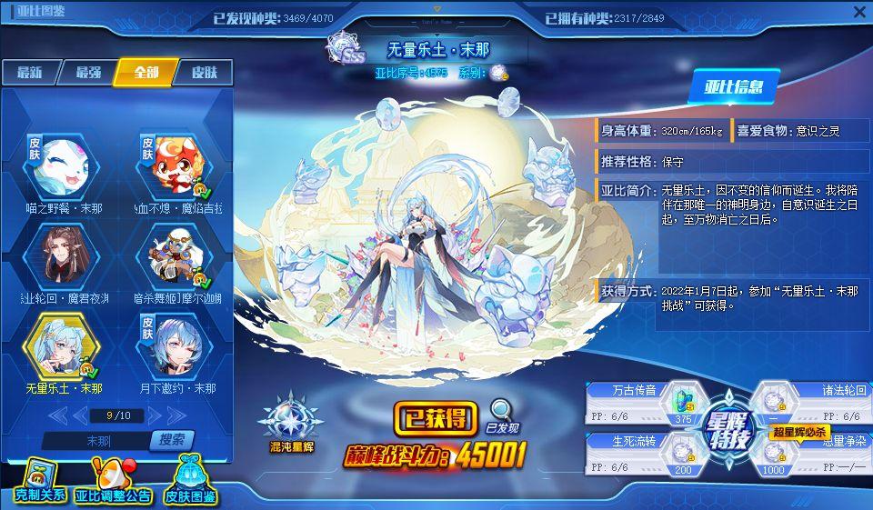 但是,如果是打某些特定的亚比的时候(例如王者梅卡),或者使用特定亚比做主攻(如上方的摩罗迦),这个就不建议适用了,建议改用异次元版的冰雪女皇(没有我方全属性+6效果),以换取更好的输出能力。