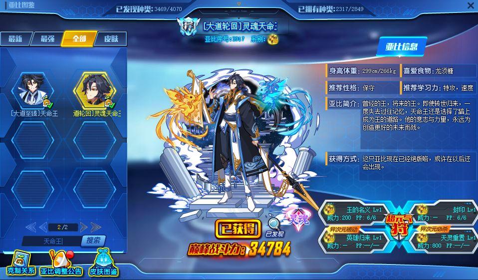而至于说灵魂天命,这个的作用在于标记对方属性等级(上场标记,数值的话对星辉亚比无效),拉双魂,且使得对方属性技能概率无效(双魂存在必定无效)。