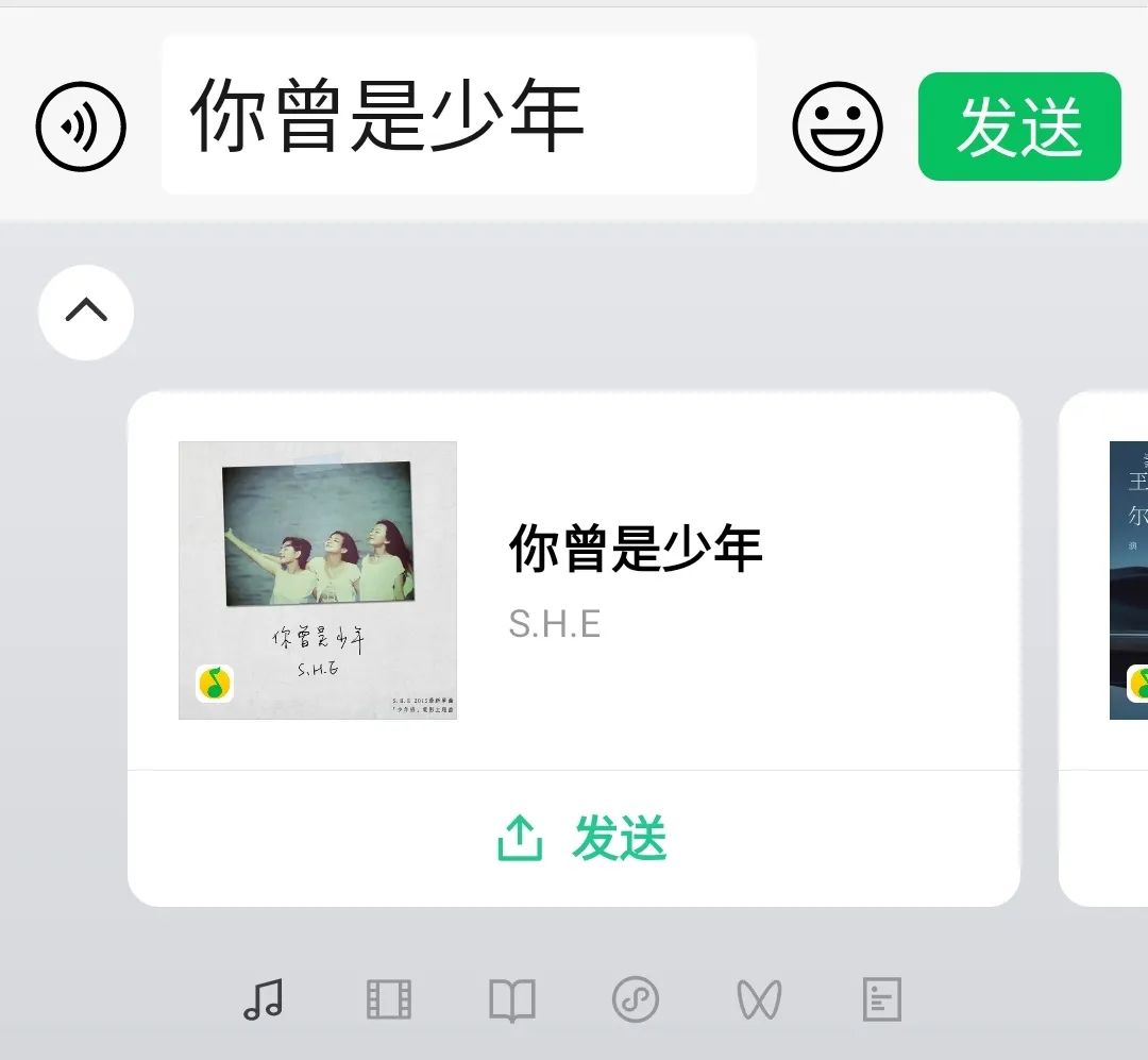 市界尝试输入“你曾是少年”,点击带有音符的候选词后,同名歌曲卡片即出现在下方,可在滑动筛选后发送。动态表情亦是如此,借由微信键盘的语义推荐和自动查找,用户不再需要自行搜索表情包,使用上更为便捷。该功能令不少用户感到惊喜:“不仅打字修正次数更少了,内容的推荐与交流更快了,斗图也更方便了”。