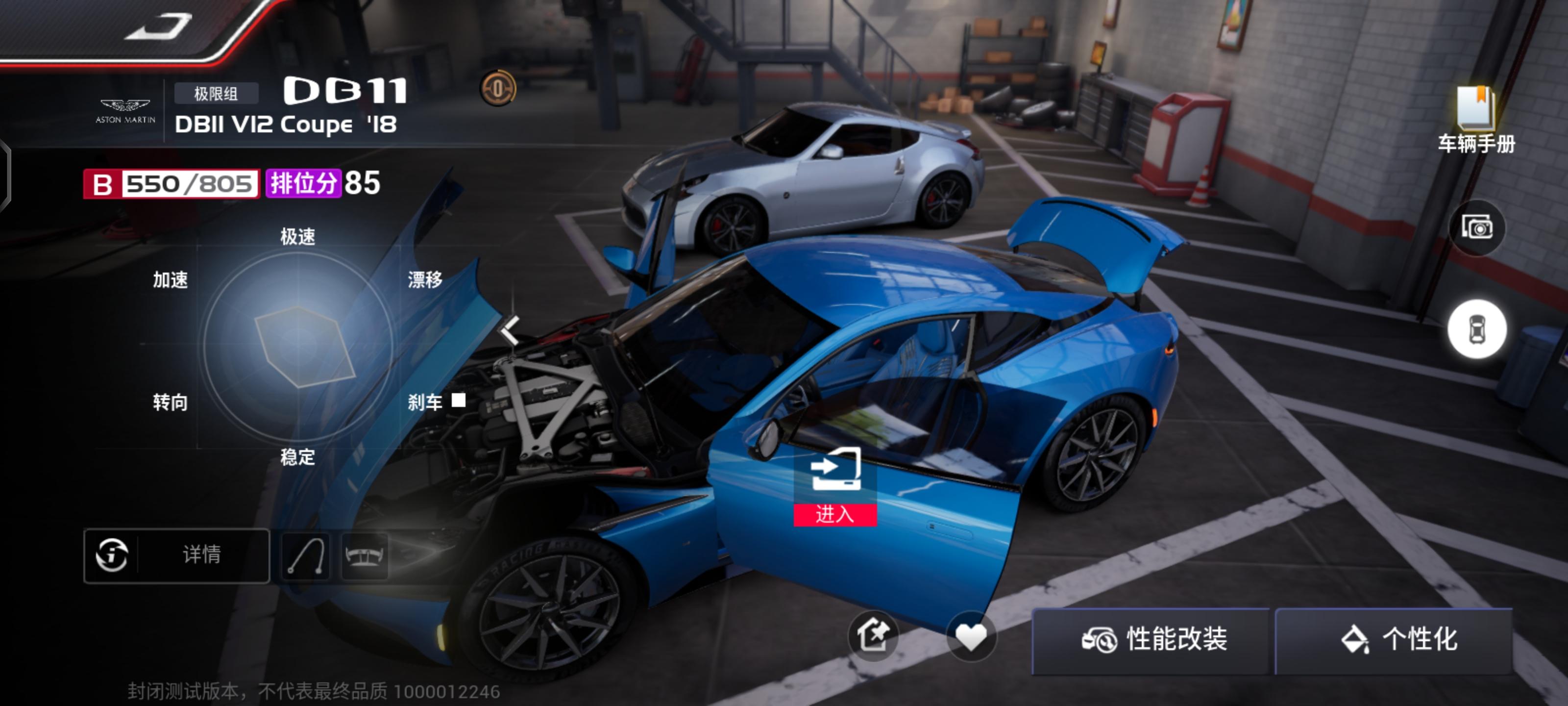 车库展示场景帧率基本锁死在了30帧,画面的滑动跟手性挺一般。据说车库场景用的都是最高质量的模型,渲染压力甚至比对局时还要高,锁帧确实能够降低一点压力,只是观感和体验都是差点意思了。