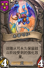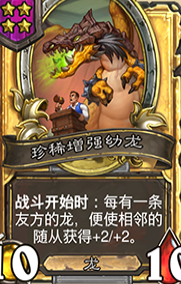 4.四本-珍惜增强幼龙:战斗开始时:没有一条友方的龙,便使相邻的随从获得+1/+1。