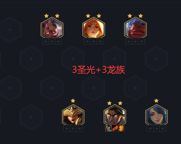 但要提醒大家的是:如果你有4龙族,不建议直接上,因为没有3圣光,阵容中期战斗力比较低,会掉不少血量,没必要贪(个人实战经验),连胜时期的时候可以直接拉人口保连胜,龙族可以快速补足损失的经济 。