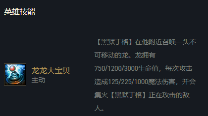 大头的技能非常独特,自带一个龙宝宝,每次攻击都会造成伤害,并且会继承大头本身的攻速,在满蓝之后,会发射三条线性高爆发的激光。