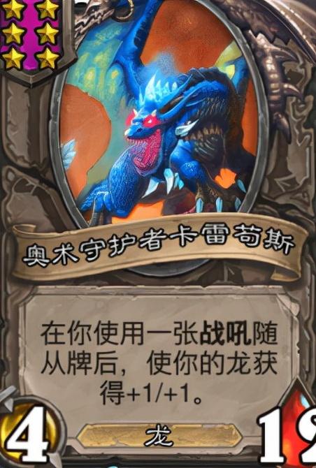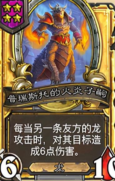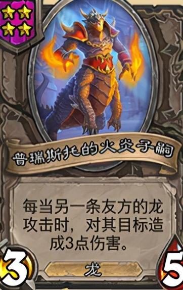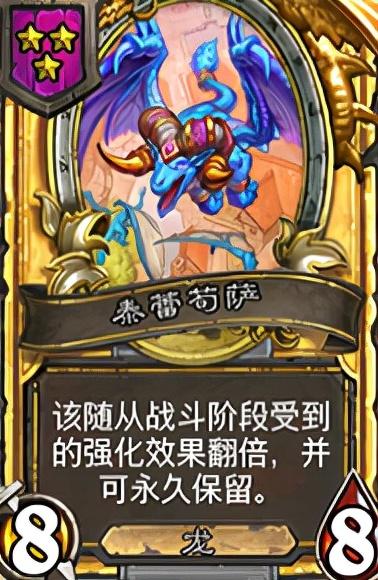 这张牌是本次新版本对龙最大的增强。每当一条龙得到攻击就+2血,配合雷诺德被动,使得后期的龙会有非常夸张的身材。