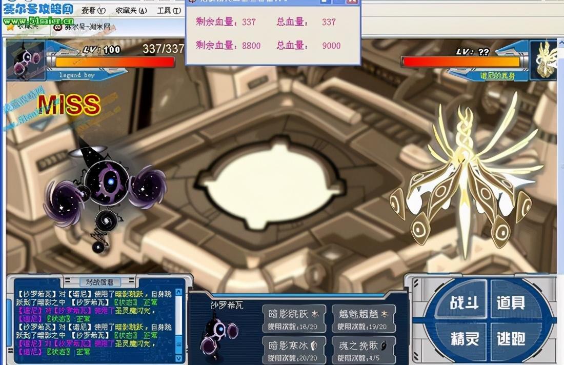 这里需要着重说明的是,在第二、三命结束时有两种方式,一种是魔焰猩猩的火焰漩涡烧死,但有时会在最后一下时MISS,所以造成换上来的精灵要挨谱尼打一下,如果能烧死最好。建议用沙罗来解决二、三命,可以和魔焰配合,魔焰烧到剩下最后1000以内血时,用沙罗的魑魅魍魉减谱尼的生命,在剩下最后50血左右时,等谱尼变成黄色,用魂之挽歌打死,然后可以直接暗影跳跃耗招,不失血。第三命结束时,同样用魔焰烧剩1000以内,用沙罗的魑魅魍魉减谱尼的生命,在剩下最后20血左右时,用暗影寒冰打死,这样保证沙罗不失血,直接暗影跳跃耗招。