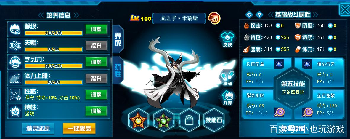 综上在谱尼特训期间,唯独改过的技能只有属性技能,璨灵圣光这个技能以前是有强化的,而原效果:全属性+1,4回合内每回合回复1/3的体力并造成等量伤害,下一回合必定先手,必定打出致命一击,5回合内免疫并反弹一切异常状态。