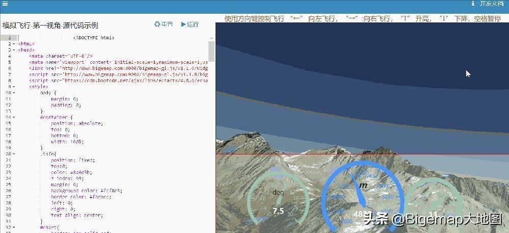 以上都有源代码支撑,如图,这是地图模拟飞行的源代码和效果两者展示: