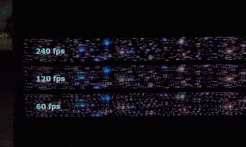 我们用UFO测试了不同刷新率的显示效果,不过拍出来的画面差距并不明显,肉眼倒是能看出很大差距。拍出来唯一能展现的就是抖动,下图240Hz时UFO流动最为平滑,对比60Hz出现了明显抖动,这种流畅感就是高刷新的优势。