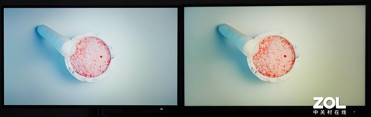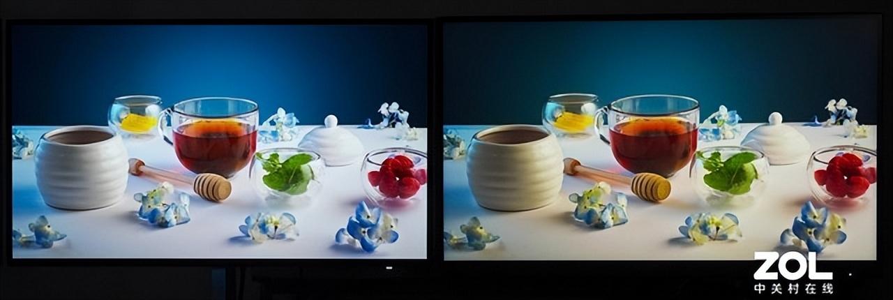 色彩方面,右边出现了一些偏色现象,AGON AG276QZD显示器因为色彩精准度很高,还原出了最真实的色彩。