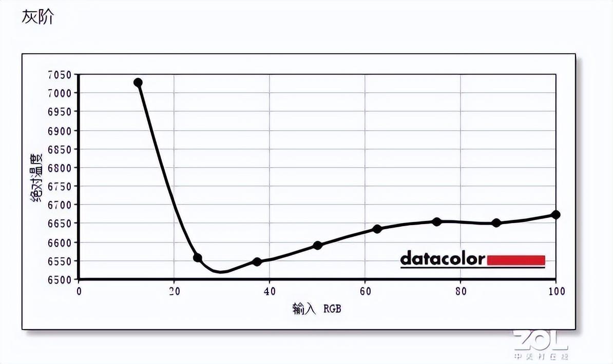 灰阶方面,AGON AG276QZD显示器在30%-100%的亮度下表现稳定,整体色温维持在6500K以上。
