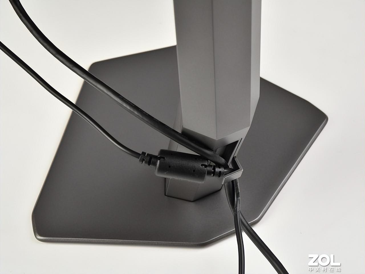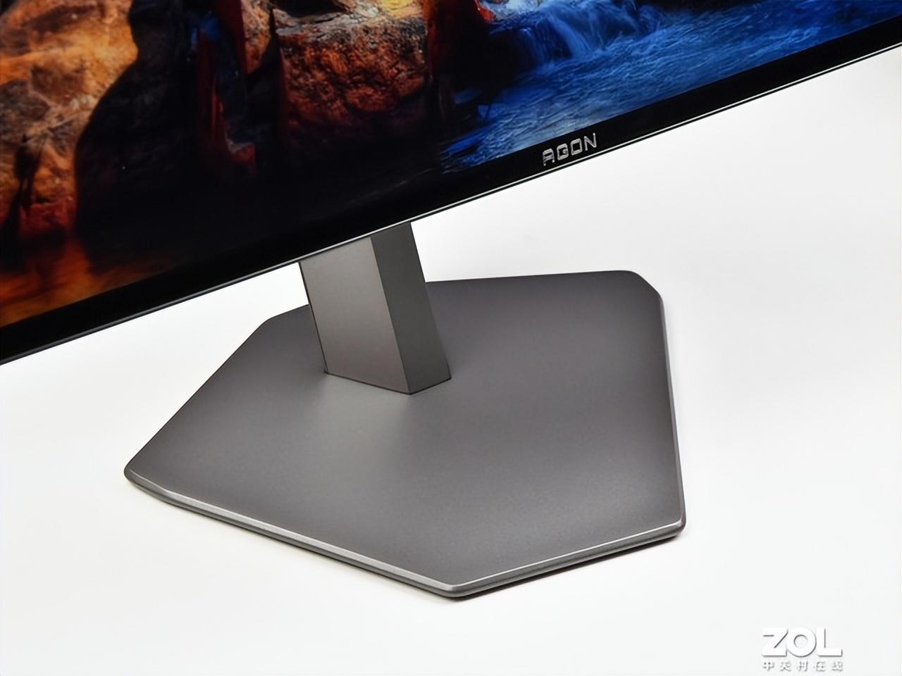 AGON AG276QZD显示器底座为不规格五边形设计,前面也提到和背部氛围灯一样的造型,这样的设计不仅结构更为稳定,整体也比X底座小了不少,又能节省一些空间。