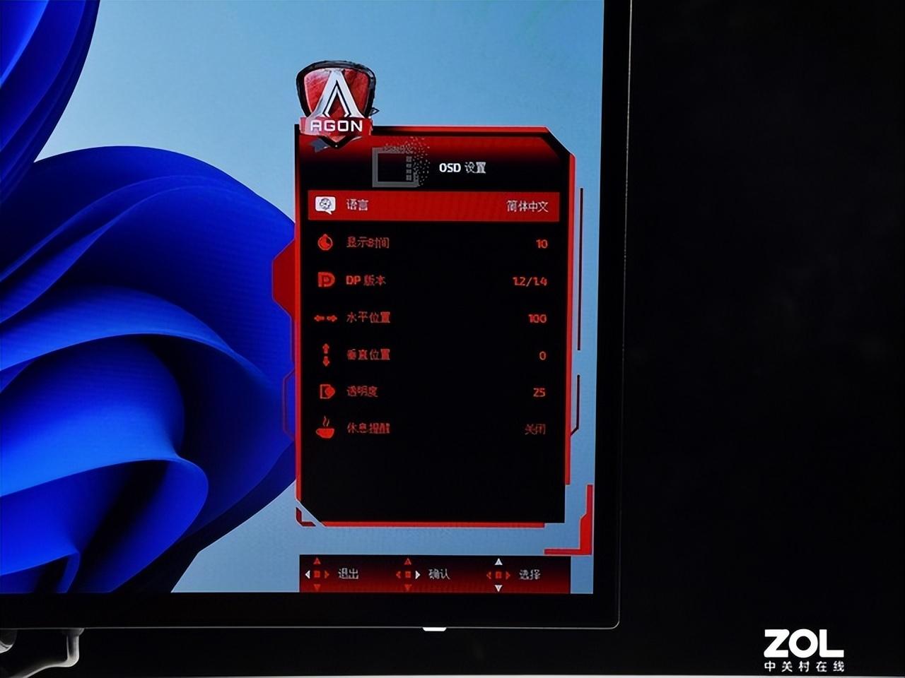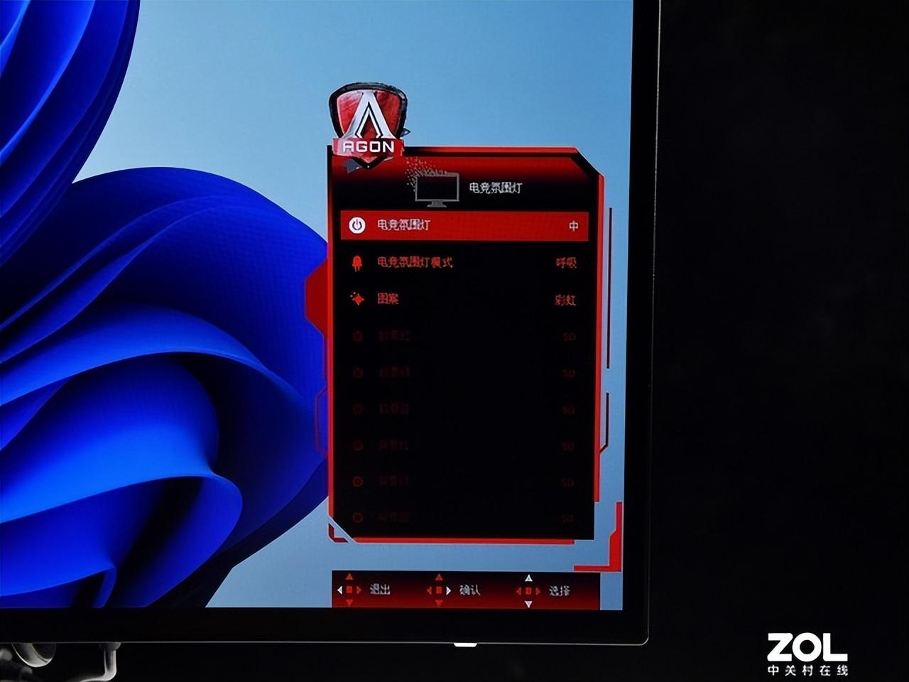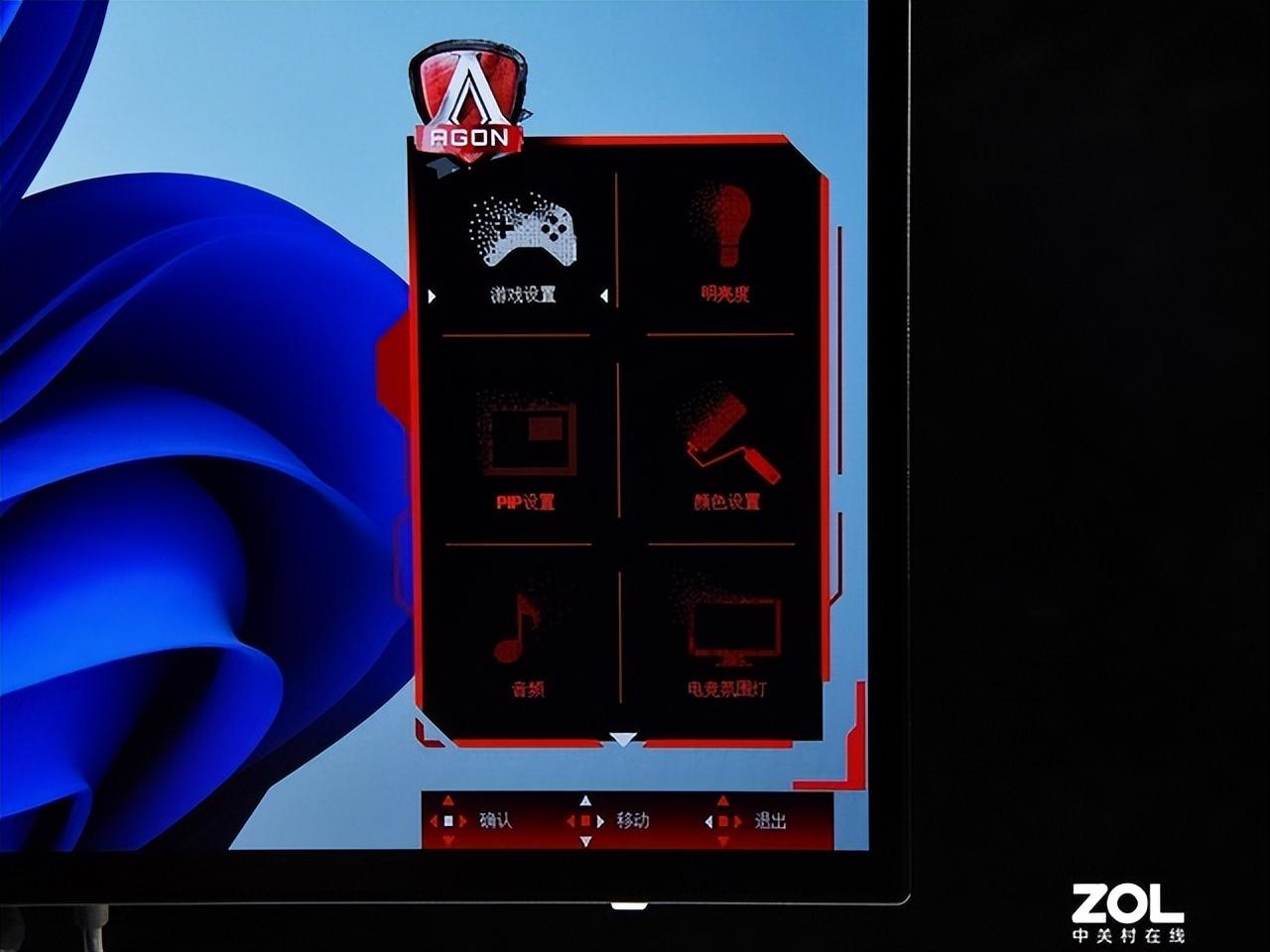 下面我们来看一下AGON AG276QZD显示器OSD菜单设置,这一代的爱攻OSD界面与上代风格一致,电竞味儿十足,菜单逻辑简单明了方便调节。