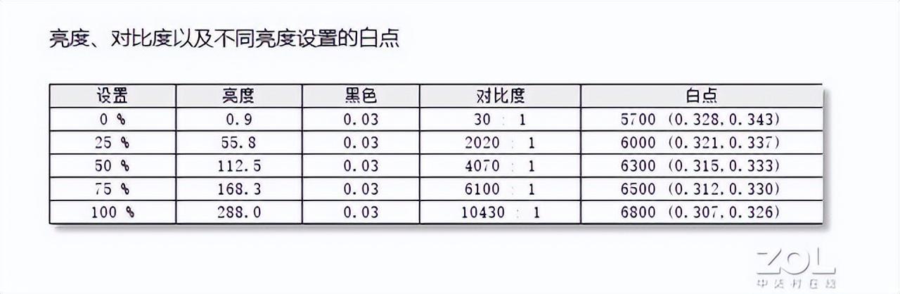 色温一致性方面,这款显示器的白点色温在5700K~6800K之间,色温表现正常,对比度也达到了10430:1。