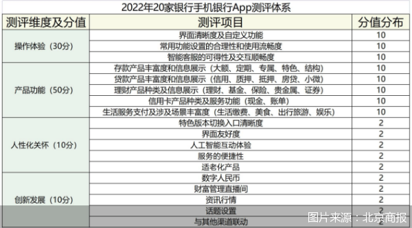 为此,北京商报记者选取行业内极具代表性的20家银行,在10月24日和10月30日期间集中对其旗下手机银行App进行测评,试图通过操作体验、产品功能、人性化关怀和创新发展四大维度的分析,总结各家银行手机银行App的共性和个性、优势与不足,并提出建议供业内参考和借鉴。