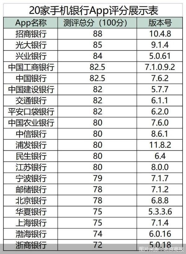 综合评分:中国银行、招商银行App评分高,中国建设银行、广发银行App存在不足