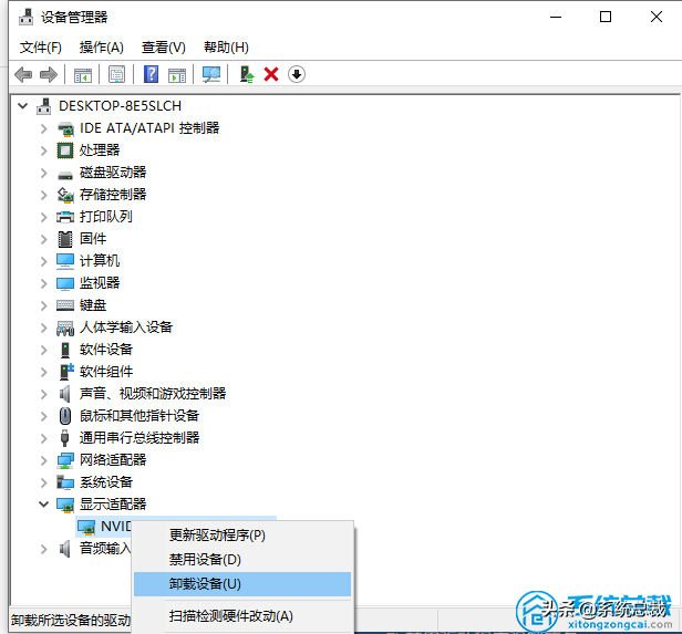 找到显卡,在右键菜单中禁用显卡或卸载显卡驱动
