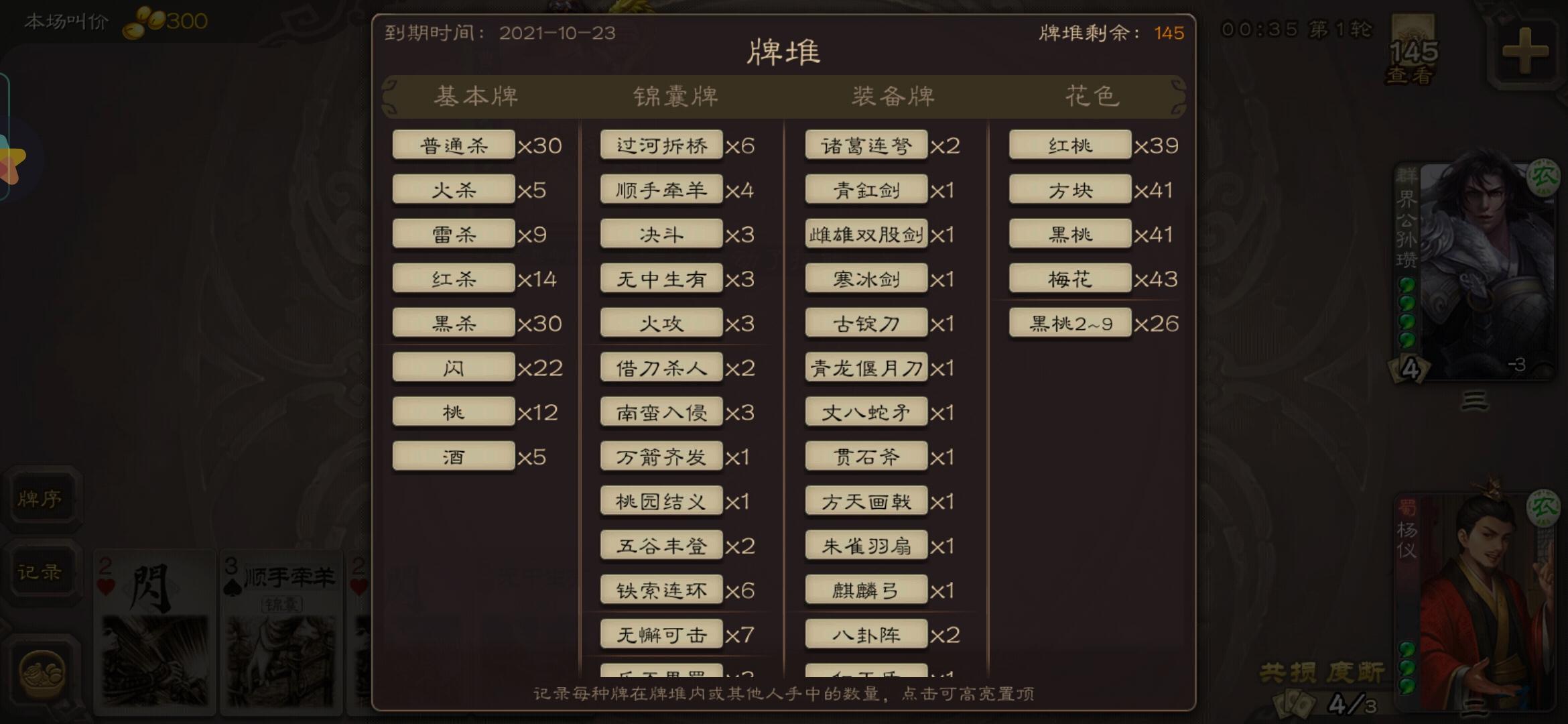 然而,就算能记住这些常见的,有时候也不高兴去记场上每种锦囊牌到底打出了几张,一是太累了,游戏嘛,重要的就是快乐,二是军八这个也不是很重要,关键看将面。