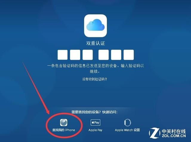 第三步:iCoud会让你进行双重认证,不要管,点击下面的“查找我的iPhone”