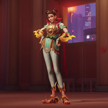 守望的新年皮肤水平依旧在线,长腿猎空cos了中国传统角色哪吒,天使则穿上了一席有着古代元素的连衣裙。