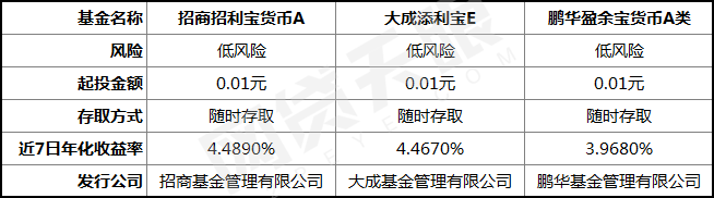 “微袋宝”是小草银行与基金公司合作推出的余额理财服务,主要有3款货币基金产品:
