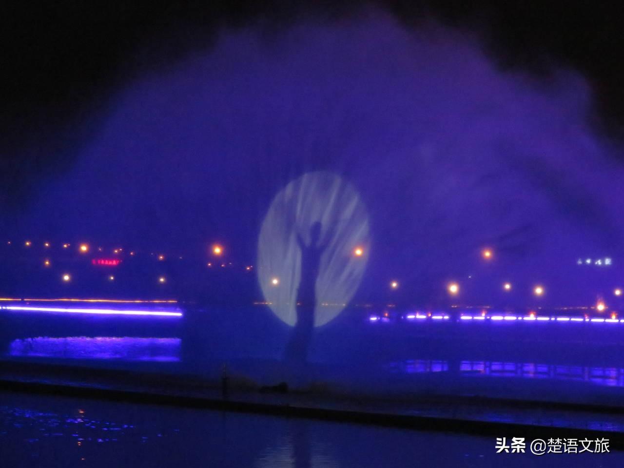 音乐换了一曲,喷泉的画风也突然改变,换成了水幕电影。五颜六色的花朵、双人舞的小姑娘、独舞的女子,轮番上演,给人们呈现了一场视觉盛宴。