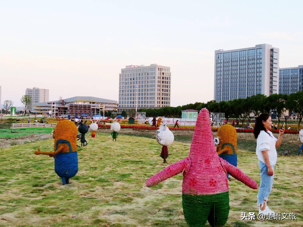 格桑花海的北面有一大片草坪,里面摆放着各种卡通造型。时值中秋,草坪的绿意退去了不少,甚至露出了不少泥土来。那些卡通人物分散在草坪的各个地方,弥补了稍显颓意的草地的不足。这块草坪还是吸引了不少小朋友和家长,前来游玩。那时还有几个外国朋友过来游玩。