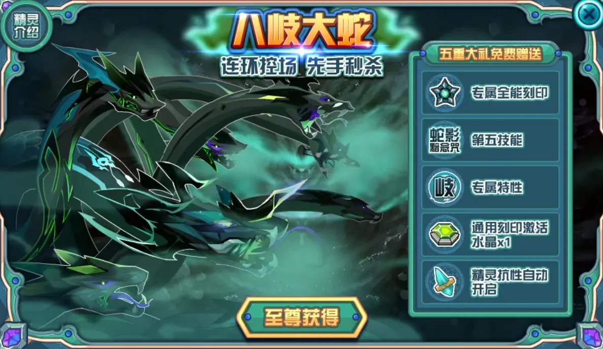 天启套装:背包内精灵造成的攻击伤害提升30%﹔速度+9%;对手当前HP低于最大HP1/2时致命一击几率提升1/4。 2018年的年费套装,现在年费精灵可以通过巡回来直购,但套装却进了活动套装返厂,而且年费套的珍稀程度要相对普通高一些。