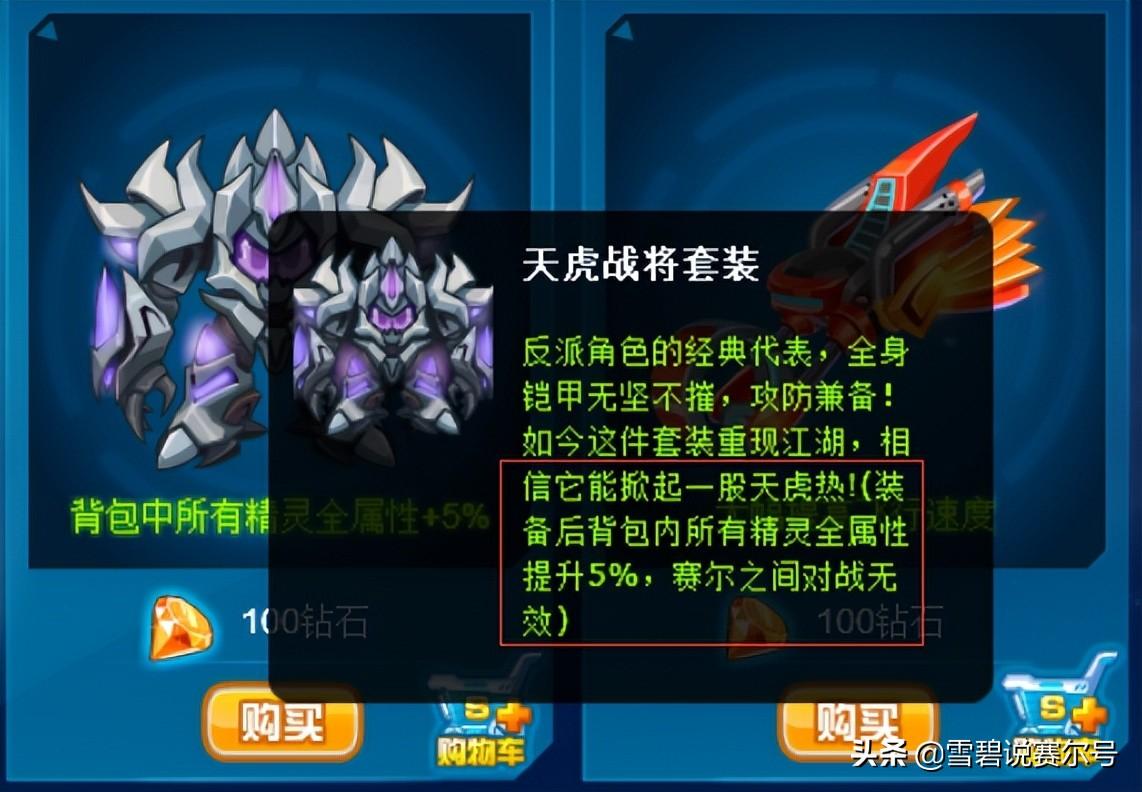 第一类就是白板套装,顾名思义就是没有效果的套装,如果你是回归玩家,你带的是你原来没有属性的套装,那么必然无法给予精灵直接的效果提升。像以前的【天虎战将】【伯爵战将】也是带有效果的。