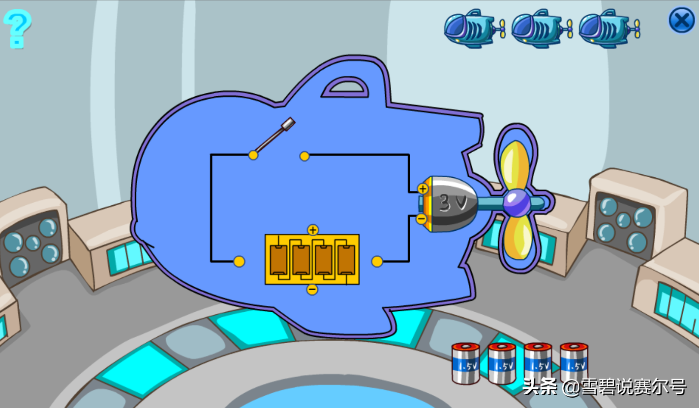 同样是接到任务去机械师哪儿,和他说话,他说要给潜艇接上电,拿个模型给你试一试。有三次机会。