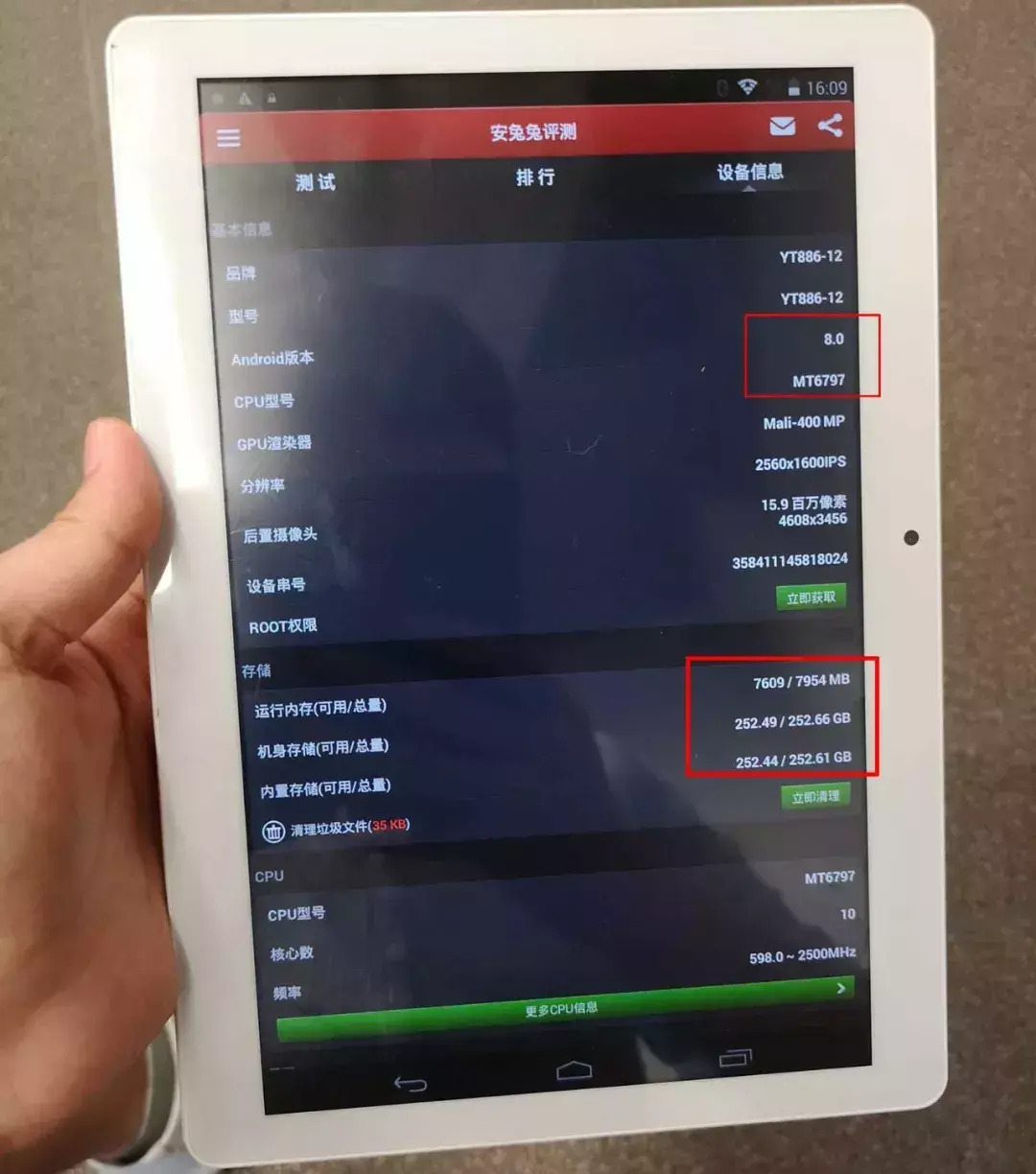 可以从这两款测试软件中发现,这款平板电脑的处理器不是它所说的 MT6797 ,而是一款 2013 年发布的低端处理器 MT6582 ,运行内存只有 1GB 。