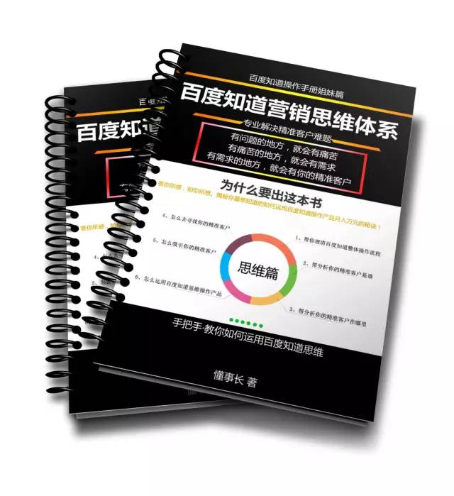 2、获取两本书:百度首页排名技术《百度知道操作手册》和百度全网布局技术《百度知道营销思维体系》