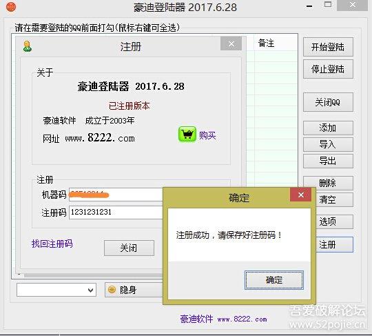 程序显示注册成功后,会自动重启进行验证,当然,重启还是注册版本,哈哈