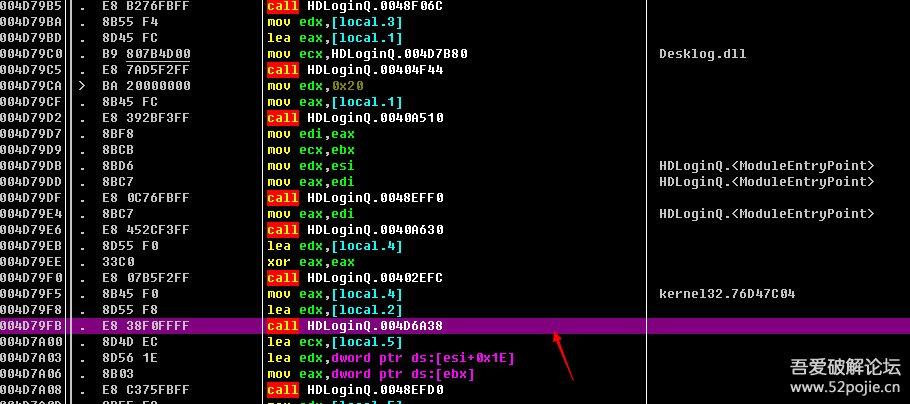 那我们依然运行按键事件,双击第4个QQ运行,程序中断,继续单步跟入,发现关键代码