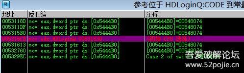 该地址为验证注册地址,那么我们即可继续查找常量 0x5444B0 共查到6处