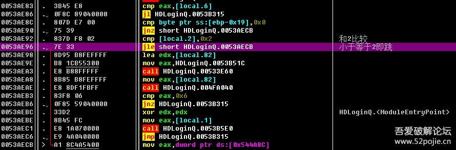 这里将JLE改为JMP,即不管数值是多少,都启动登陆QQ程序