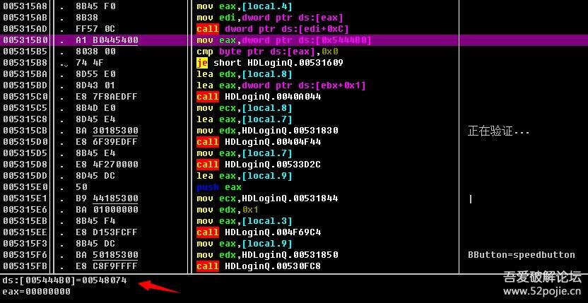 然后我们保存文件后 返回 正在验证... 地址 005315CB