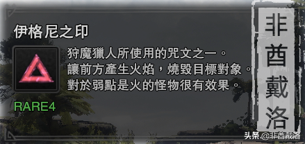 这样在日常狩猎中也可以使用低配版的【伊格尼之印】了——想要用原版的话,需要穿上杰洛特α整套防具。
