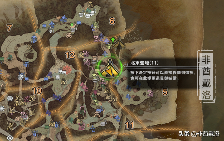 用【伊格尼之印】解救毒妖鸟之后,就可以开展直线任务【濒死的毒妖鸟】了。毒妖鸟被解救之后,会离开,这里我们先不管。打开地图往【11号营地】飞: