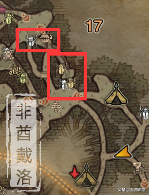 走出【17号营地】,在下图的位置可以拿到两个【不死虫】: