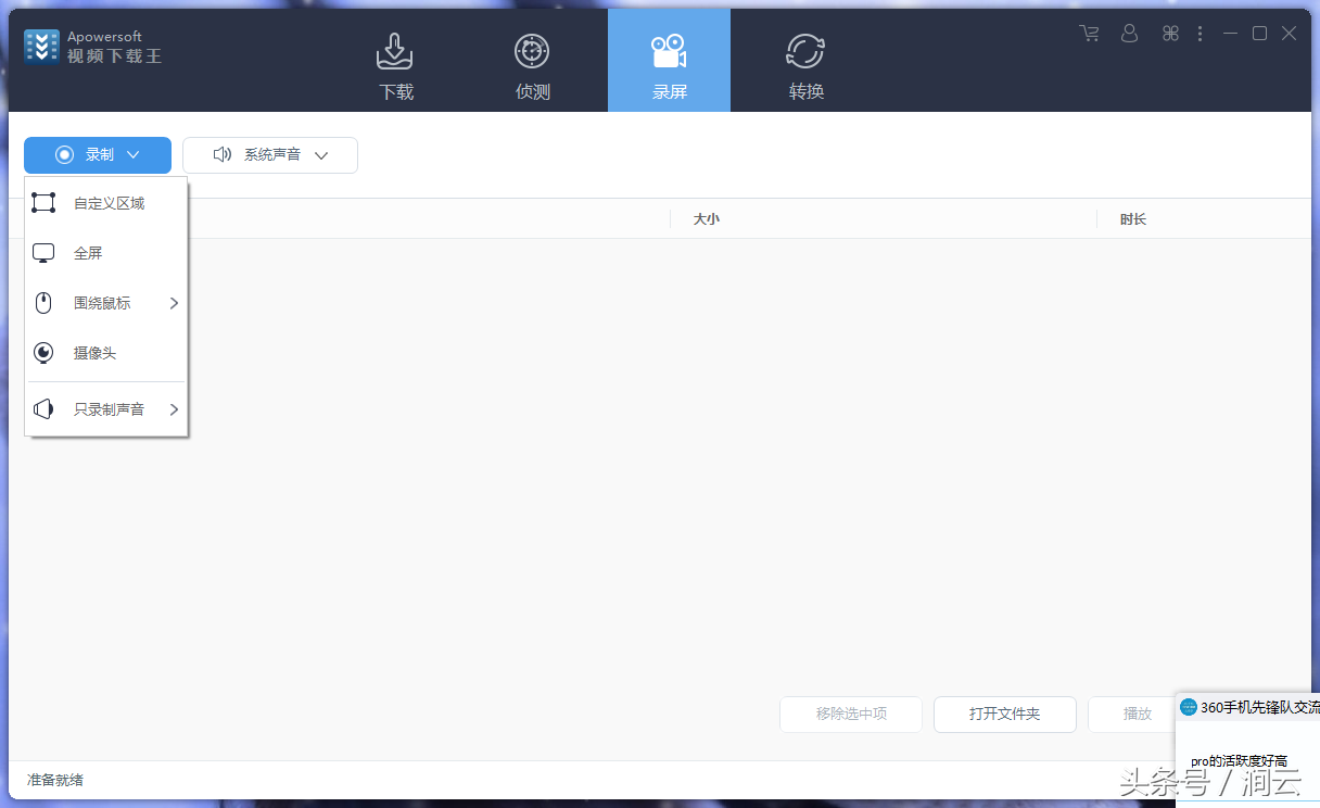 录屏: 使用软件内置的录屏功能,您能够轻松录制电脑上的所有活动,只要能播放就能录制。