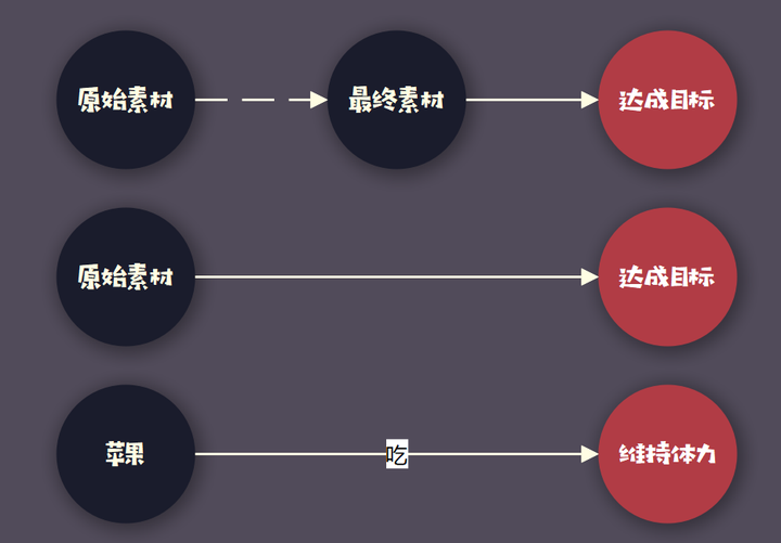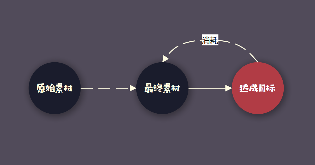 从价值链的意义来看,最终的节点往往需要完成某个既定的目标、任务。反正它一定会有自己的某种使用需求。那么忽略之间所有的节点,只考虑原始节点和其目标,可以提出一个问题,为了达成既定的目标是否会消耗掉最终素材,这个问题的答案会引导游戏朝着两个不同的方向发展。