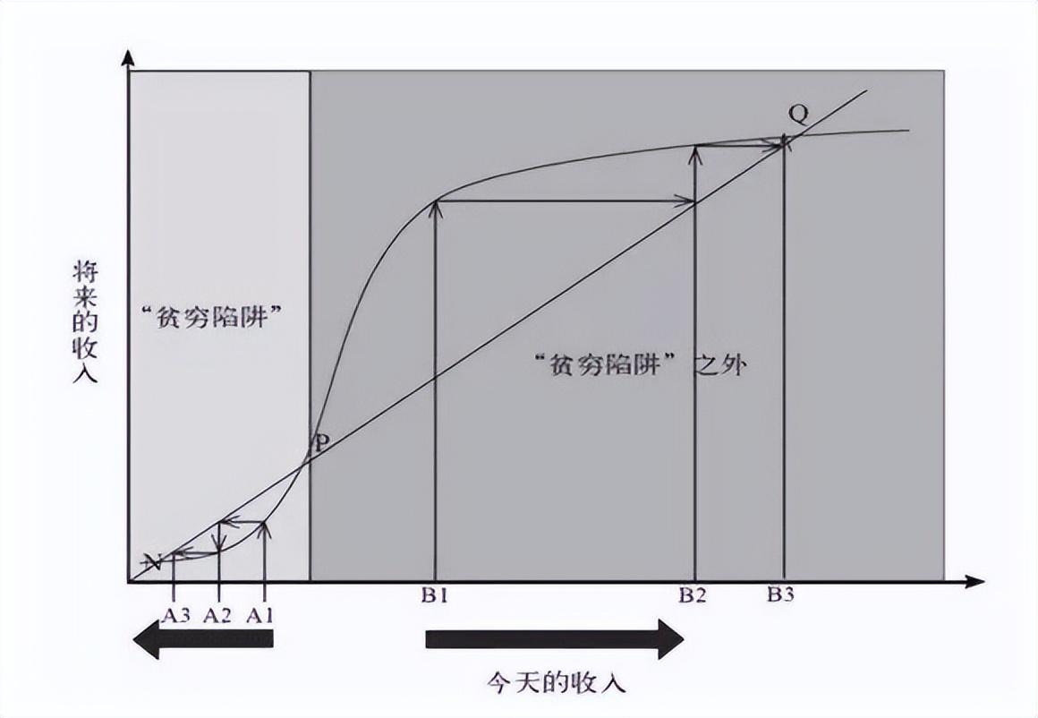 本质上它也描述了一个死亡螺旋的过程,在《贫穷的本质》一书中,作者描述了一个贫穷陷阱的图,如下所示