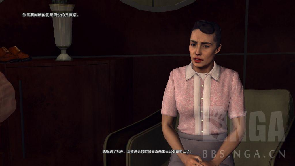 在这种情况下,某些奇怪的知识,比如看过美剧<lie to me>能成为重要的知识点。<黑色洛城>中一大特色:面部表情动捕为所有的嫌疑人录制了丰富的表情变化素材,但难点在于,并非每个人说谎时的表情都是一样的,有的人会眼神游离、有的人会皱眉思索、有的人情绪激动,很多情况下,甚至需要其他问题时嫌疑人露出的表情作为对比,才能更方便的下判断。而重要的是,不要轻易的提出没有把握的指控,这会导致在审讯过程中形势的完全逆转,甚至在部分情况下会让证人不愿意配合而提前终止审讯,但游戏也提供了一定的缓冲机制:在提出指控之后,选择证据的环节如果自己觉得并没有有力的证据,那么还可以撤销指控。