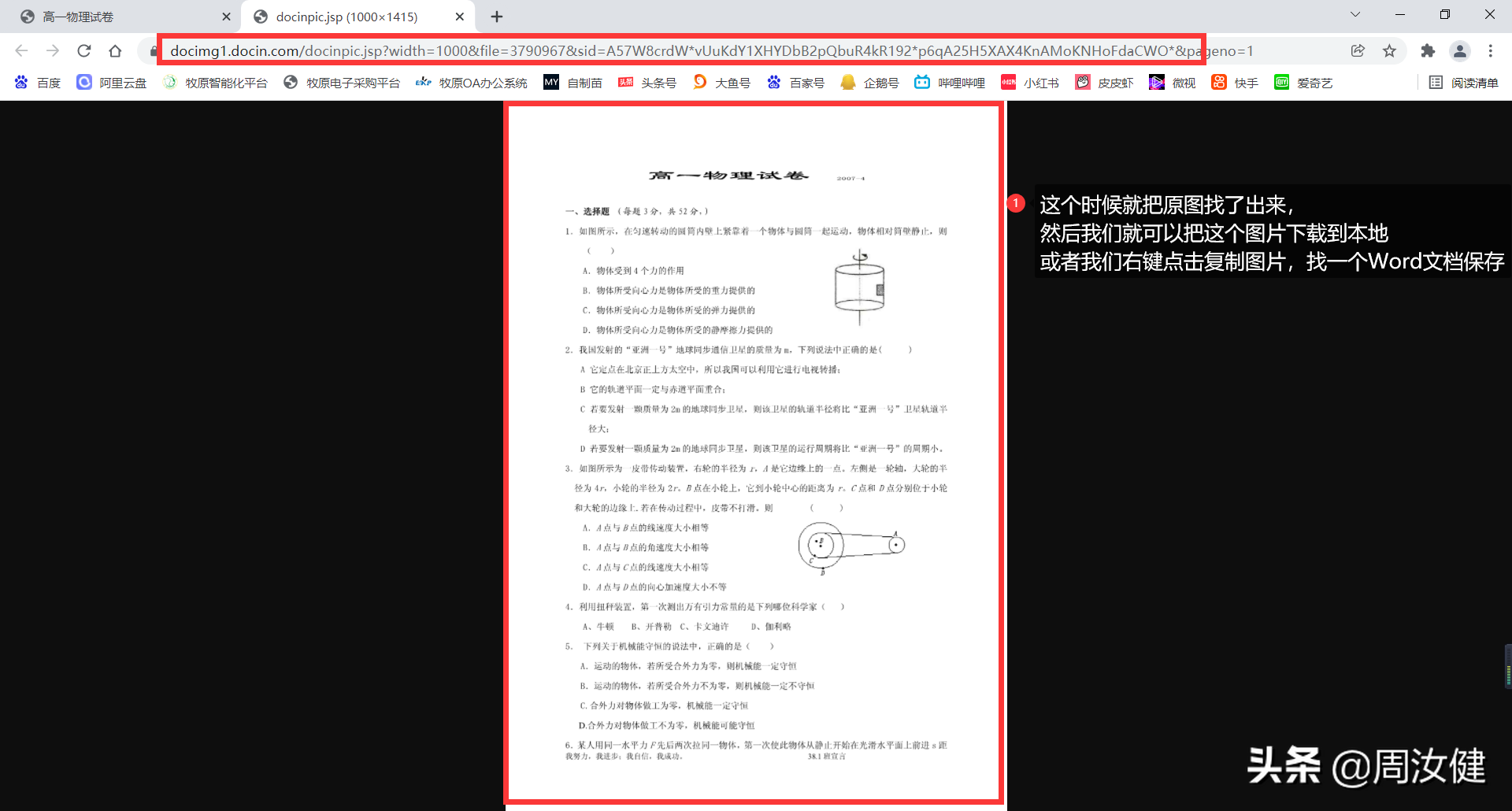 第十步:用鼠标右键点击这个链接,点击转到这个链接。这个时候就把原图找了出来,然后我们就可以把这个图片下载到本地,或者我们右键点击复制图片,找一个Word新文档进行保存。剩余的页面用同样的方法就可以下载了,如果页数较多大家可以将链接后边的数字进行更改,然后再Excel表格中进行填充序列,使用下载软件批量下载即可!