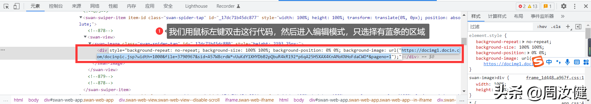 第九步:我们用鼠标左键双击这行代码,然后进入编辑模式,只选择有蓝条的区域