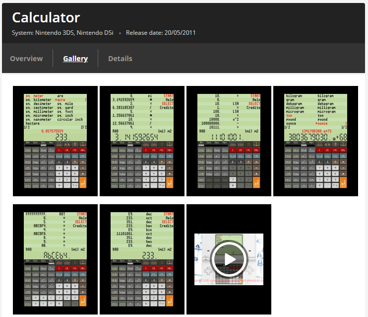在Switch之前,任天堂商店上架过DSi与3DS两款掌机可用的计算器程序。任天堂官方发行过《超级马力欧兄弟》与《动物之森》主题的计算器,第三方发行商Cinemax也发行过一款《计算器》应用,三款计算器各自的售价都不超过3美元,还都内置了单位换算功能。