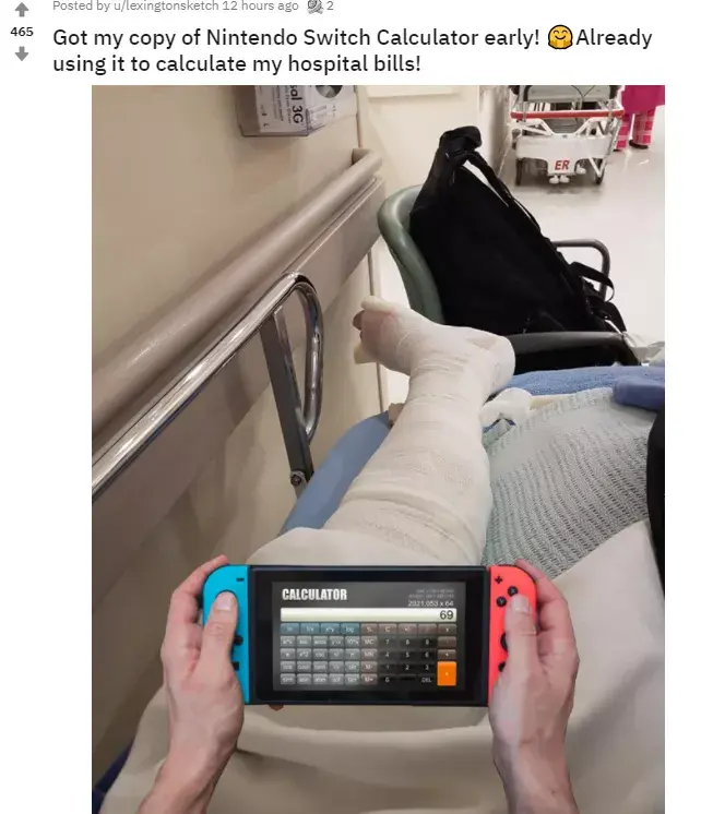 “我很早就搞到了Switch计算器!已经在用它计算我的医院账单了!”