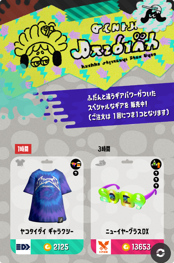 另外,在首页的右上角,还有海葵姐姐的在线商店,其中会有一些独占的装备出售。点击订购(注文する),次日(0点后)即可在游戏中的海胆哥处收货了(货到付款)。
