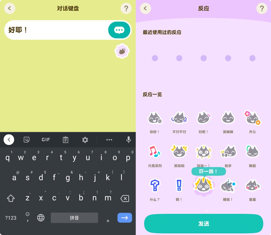 对话键盘可以让我们在手机上输入的文字,直接发送至游戏内,再也不需要忍受Switch那个蛋疼的输入法了~